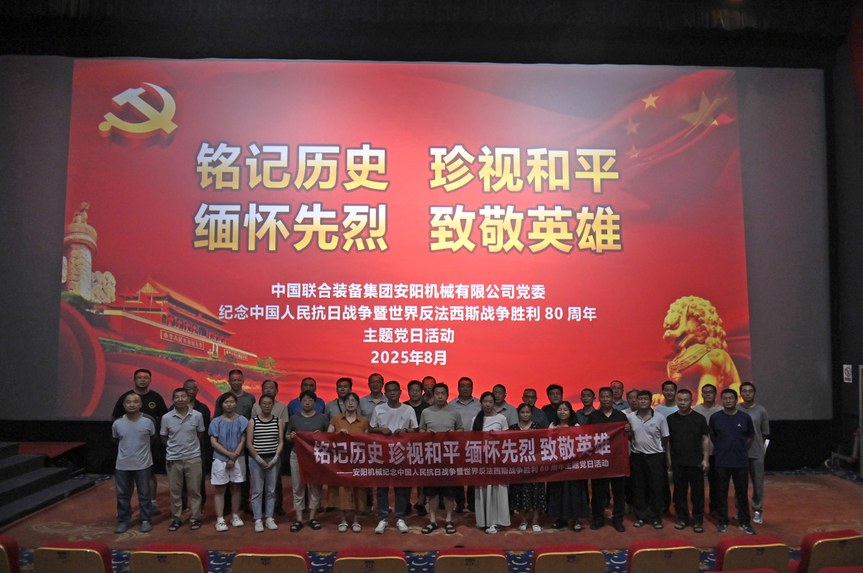 為深入貫徹習(xí)近平總書記關(guān)于弘揚(yáng)偉大抗戰(zhàn)精神的重要指示精神,紀(jì)念中國人民抗日戰(zhàn)爭暨世界反法西斯戰(zhàn)爭勝利80 周年,大力弘揚(yáng)愛國主義精神與偉大抗戰(zhàn)精神,引導(dǎo)廣大黨員干部賡續(xù)紅色血脈、勇?lián)鷷r代使命,8 月 23 日下午,中國聯(lián)合裝備集團(tuán)安陽機(jī)械有限公司黨委以 “銘記歷史 珍視和平 緬懷先烈 致敬英雄” 為主題,組織全體黨員及入黨積極分子,開展主題黨日活動,通過觀看愛國主義電影《南京照相館》,重溫歷史記憶、凝聚奮進(jìn)力量。